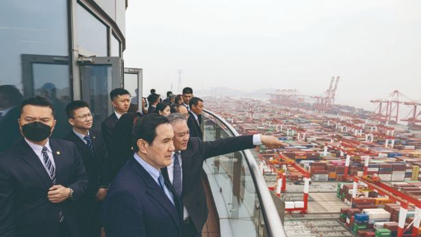 4月5日,马英九一行参访上海洋山港区。新华网