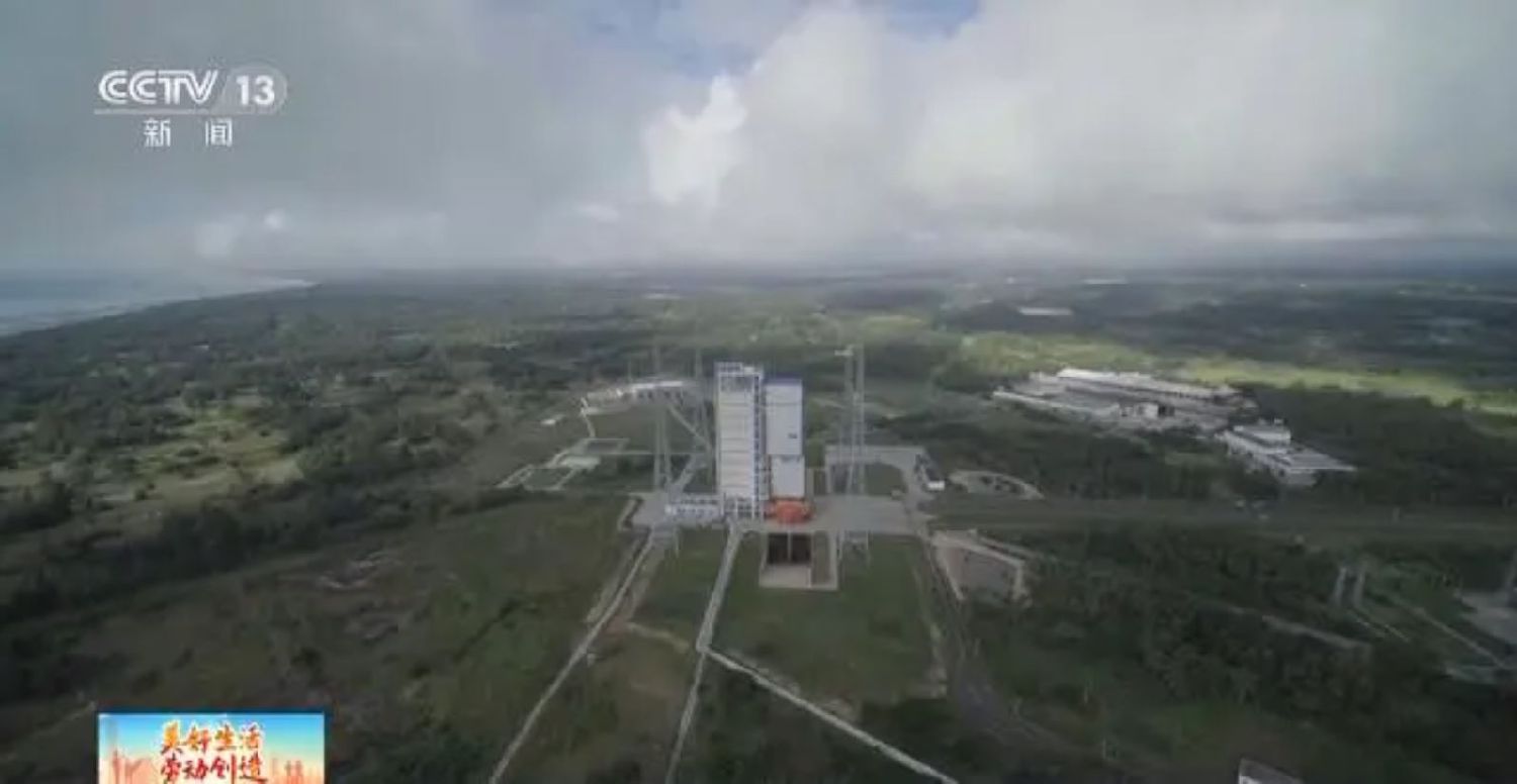 天舟六号货运飞船和长征七号火箭在海南文昌航天发射场展开测试。大陆央视