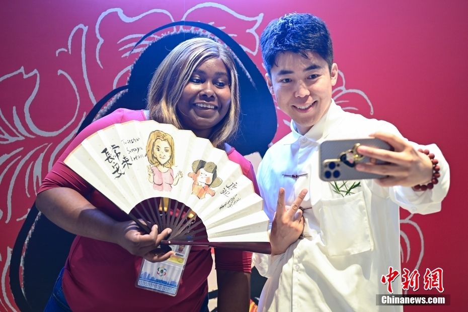 在现场,峰会新闻中心特别设置了科技文化展示区,各国参会记者踊跃打卡体验凤翔泥塑、水墨扇面画等中国传统文化。