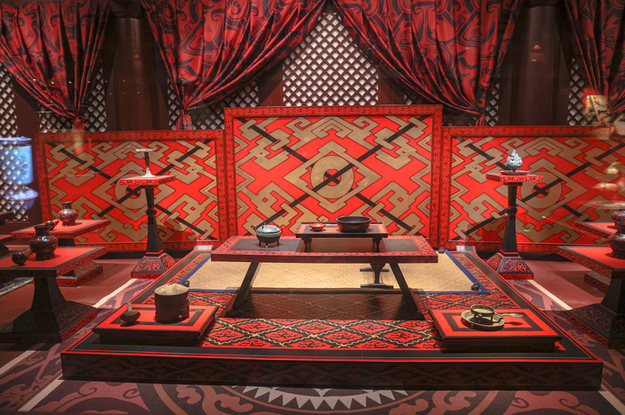 南昌汉代海昏侯国考古遗址公园内的“礼乐宴飨”展区。中新社