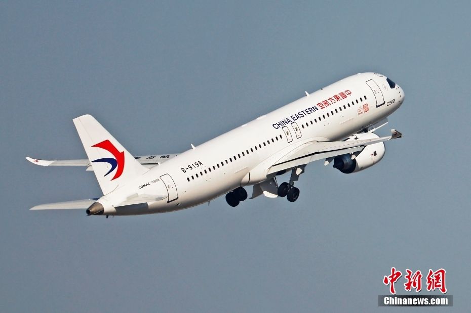 1月28日,东航全球首架C919中国国产客机从虹桥机场起飞,开始兔年的首次飞行。中新社