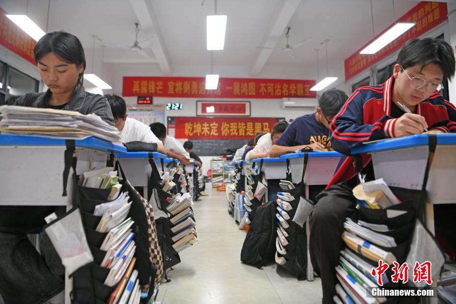5月22日,安徽省淮南市凤台一中高三学生在晚自习课堂上认真复习,冲刺高考。中新网