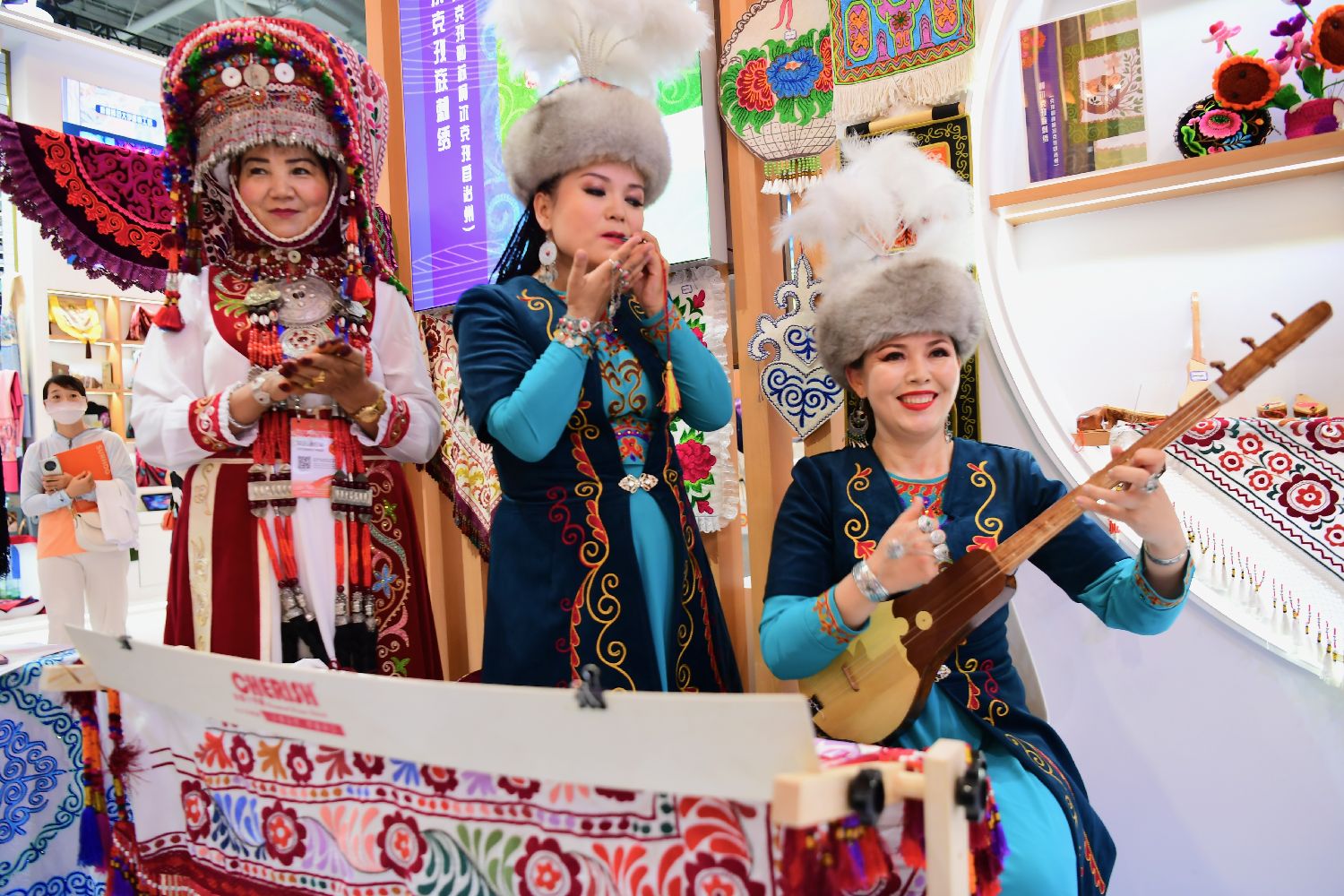 6月7日,文博会上的柯尔克孜族民族乐器“库姆孜”。中新社