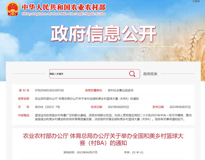 综合东南网、中国经济网报道,7日,中国农业农村部、体育总局联合发布通知,决定组织开展全国和美乡村篮球大赛(村BA),旨在通过举办富有农趣农味的乡村篮球比赛,突出展示新时代农民风采,展现乡村风貌,引领乡村风尚,营造全社会关心关注宜居宜业和美乡村建设的浓厚氛围。