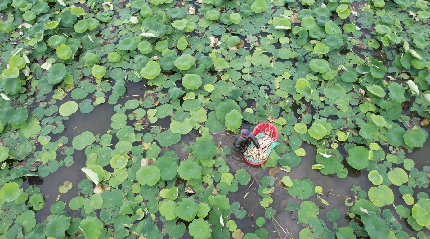 5月23日,航拍武汉蔡甸藕塘。中新社记者 张畅 摄
