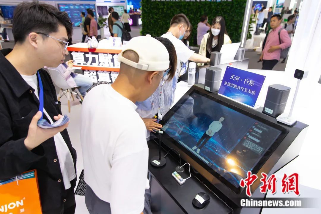 仲夏之夜,天津海河两畔多处楼宇滚动播放达沃斯宣传语。中新社