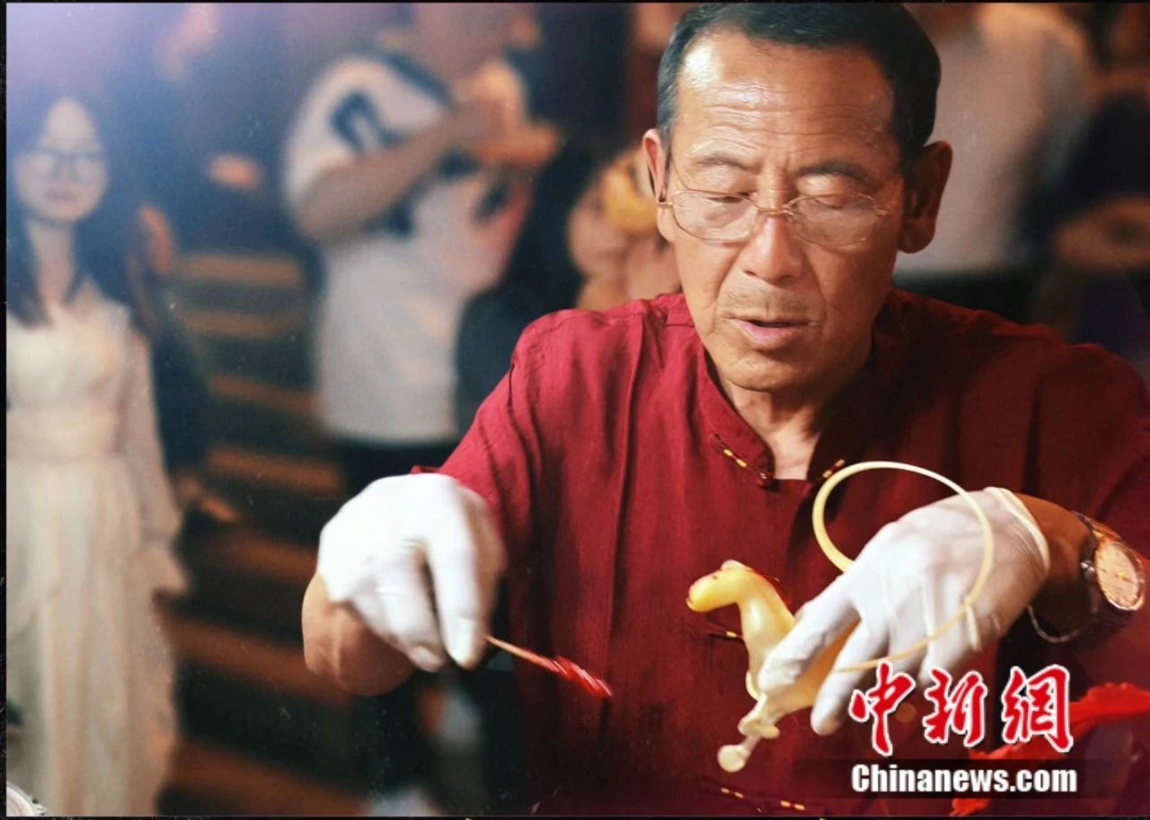 图为天津“九河张记”张建明师傅为食客制作煎饼果子。中新社