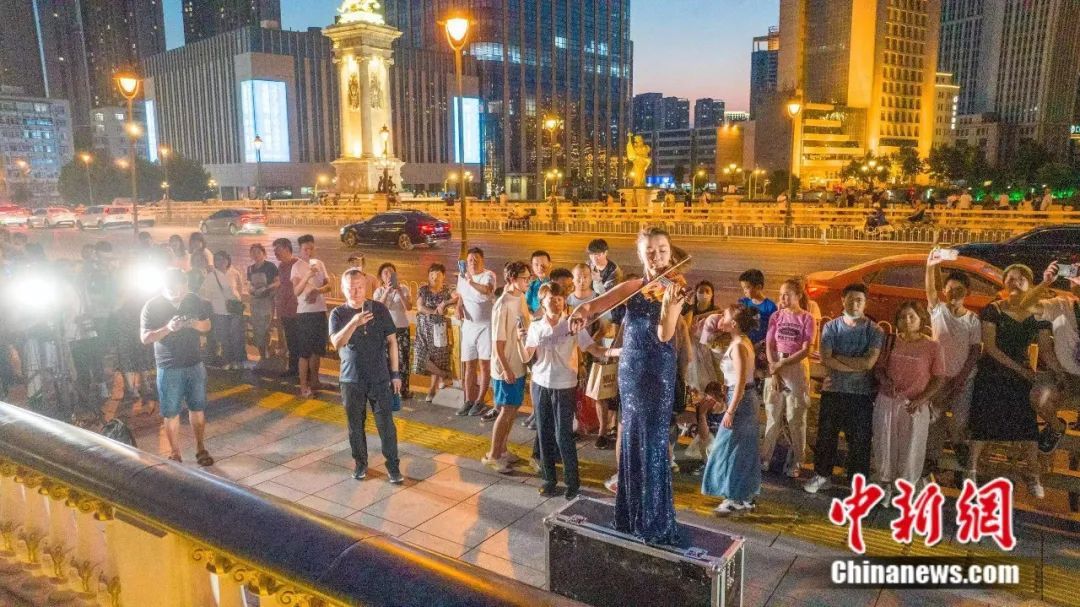 图为2023天津海河音乐节期间岸边的小提琴演出。天津旅游集团供图
