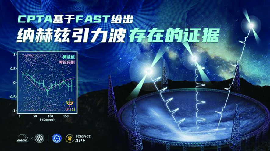 CPTA团队利用FAST探测到纳赫兹引力波存在关键性证据的示意图。图据中国科学院国家天文台