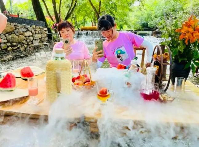 在社交平台上,不少网民在分享中用“氛围感满满”“仙气飘飘”来形容围炉冰茶的体验感,精致的摆盘、唯美的照片吸引了更多潜在消费者询问“哪里的店”“如何预约”。
