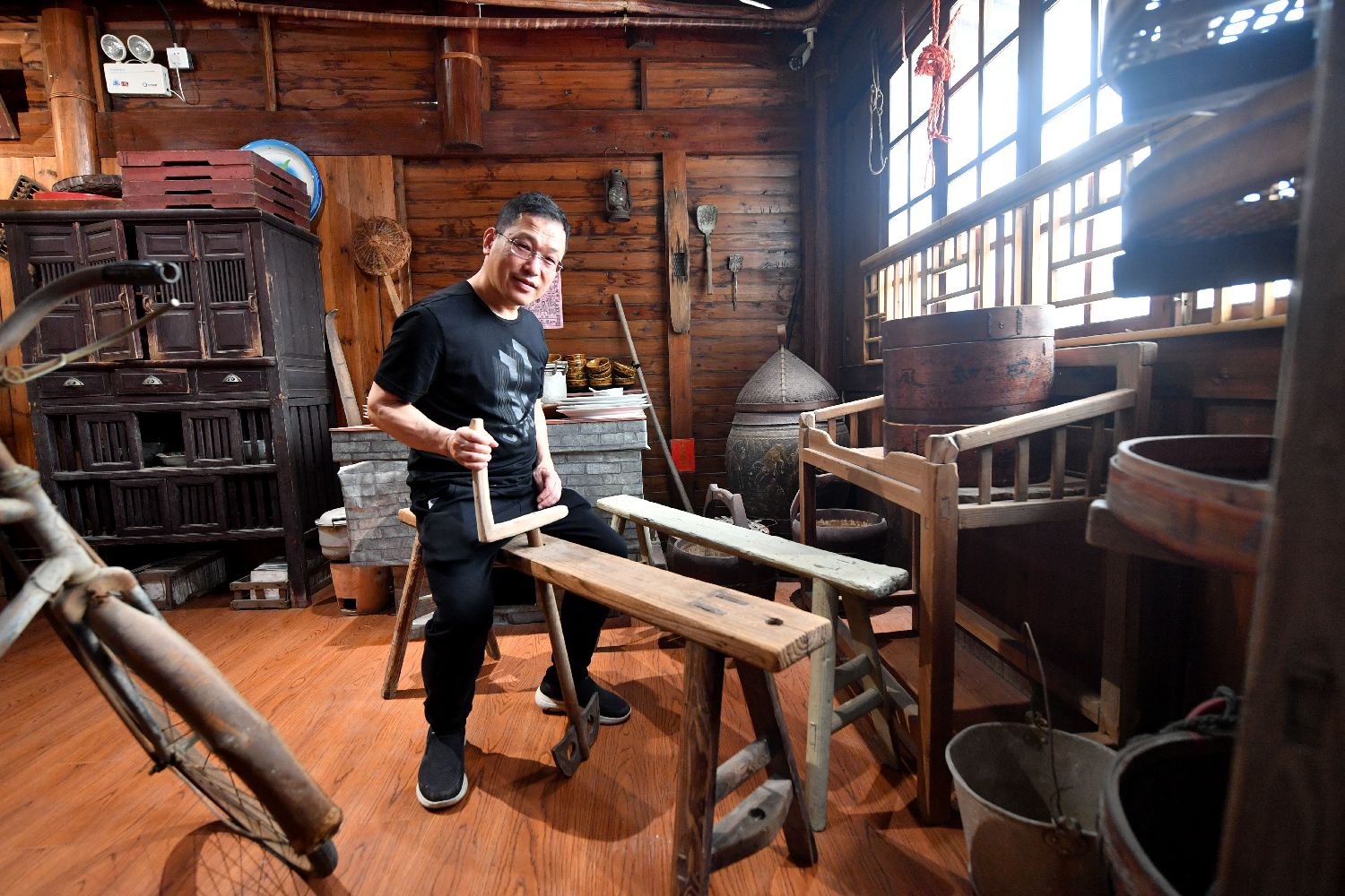 4月14日,位于福州塔巷的永和鱼丸历史博物馆里,旧时的鱼丸制作工具记录着福州鱼丸的“前世今生”。 中新社记者 吕明 摄