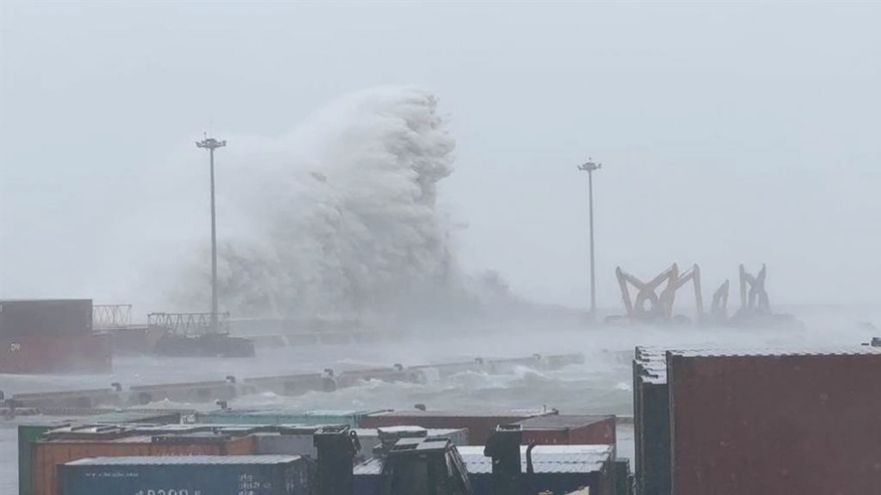 有台媒报道,旅游热门地垦丁所在的恒春半岛风大雨大,香蕉湾渔港被长浪涌进港内,激起数米高的浪花,路上人车稀少,一改暑假期间垦丁游客络绎不绝的景象。