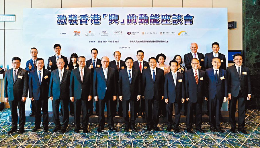 激发香港“兴”的动能座谈会8月2日在湾仔会展中心举行,香港特区行政长官李家超及中央政府驻港联络办主任郑雁雄出席座谈会并致辞。