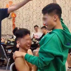 有退役台军人士表示,疑似在玩“以前部队常见的骑马打仗游戏”,而且照片也应该是参加聚会的人近距离拍摄。这群官兵在饭店内旁若无人地嬉闹,其中部分官兵还给照片里的男子“加油打气”,丝毫不顾及围观的市民。
