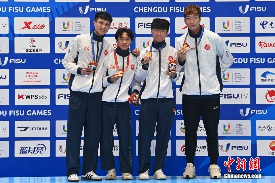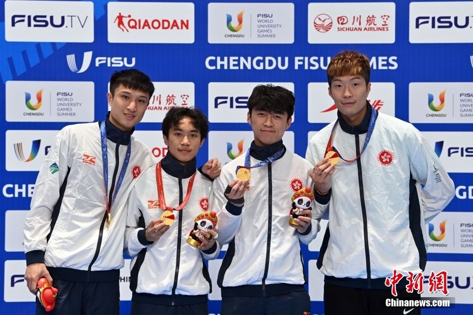 8月7日,在成都举行的第31届世界大学生夏季运动会击剑项目男子花剑团体金牌赛中,中国香港队45:33击败法国队获得金牌。