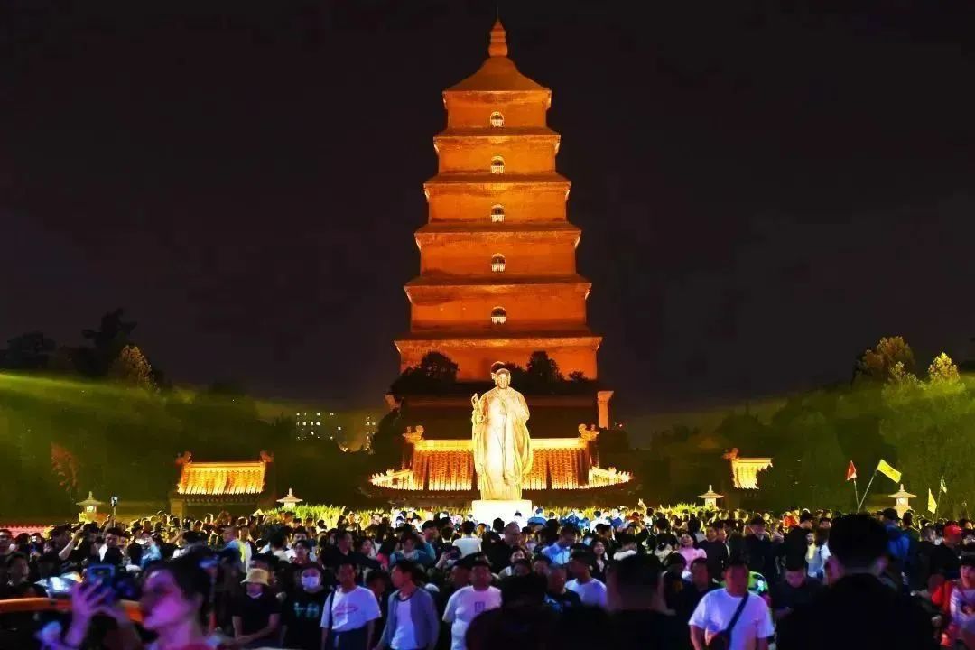 大唐不夜城灯火璀璨,喜迎八方来客。来源:西安发布