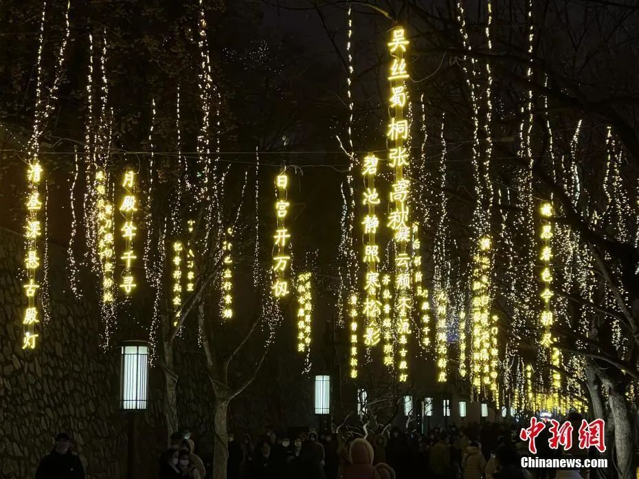 西安大雁塔旁步行街的“诗词”灯饰。中新网