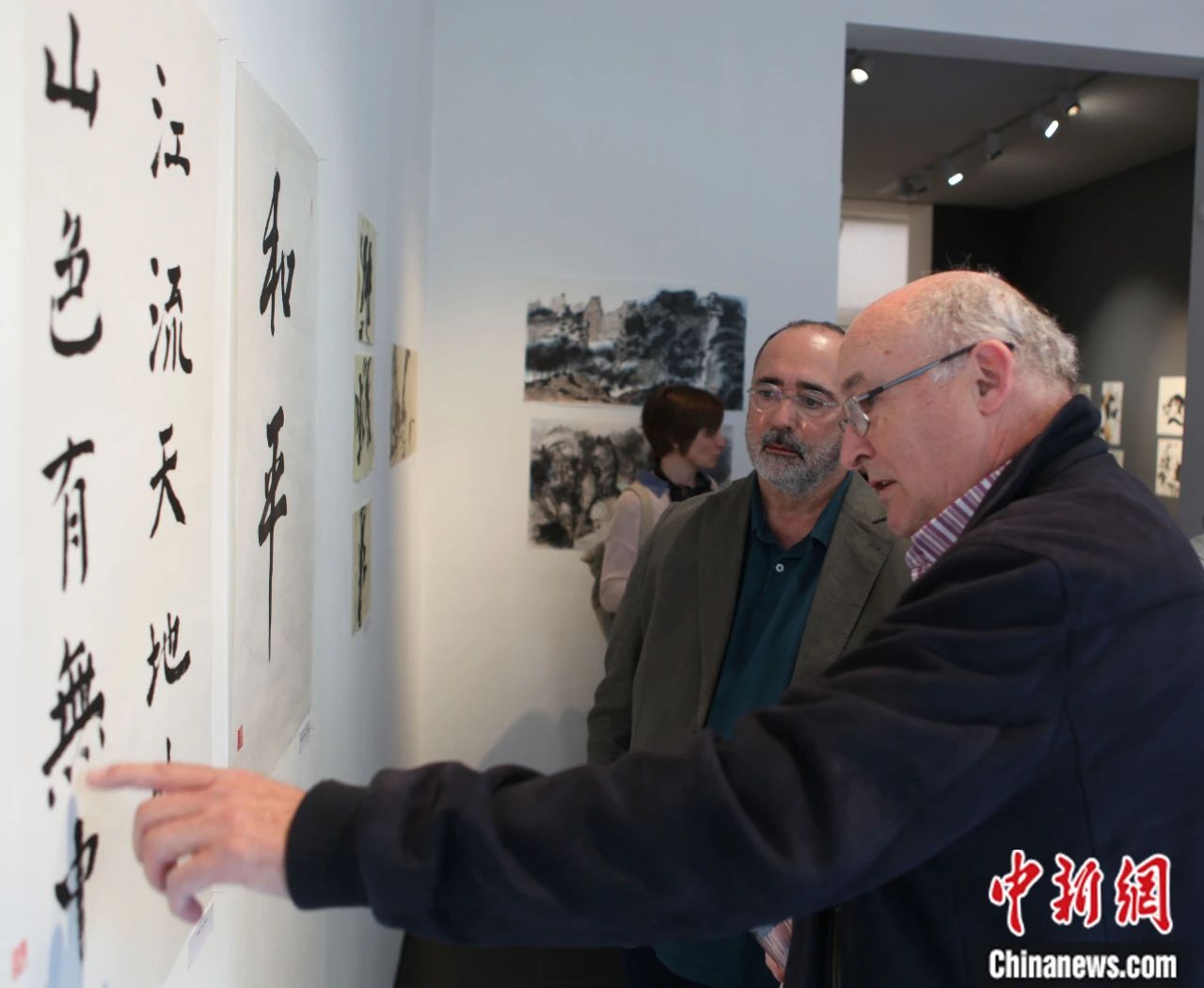 比利时高等汉学院常年开设书法、绘画、汉语等培训班,致力推广和传播中华文化。图为今年6月,汉学院组织年度书画展,观众赏鉴书法作品。中新网