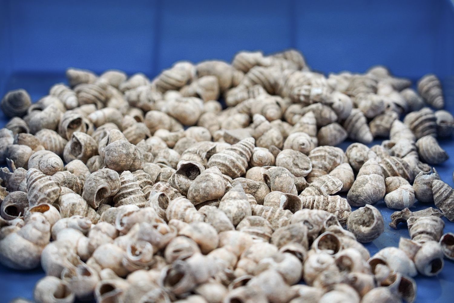 图为柳州白莲洞穴科学博物馆库房内的螺蛳壳化石。 韦国政 摄