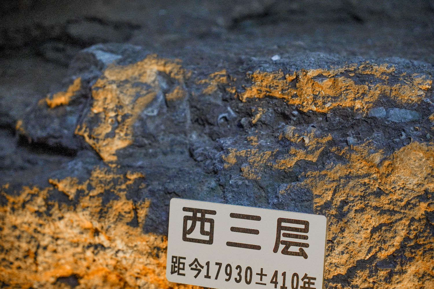 图为位于白莲洞考古现场的西三层,部分螺蛳壳化石仍清晰可见。 韦国政 摄