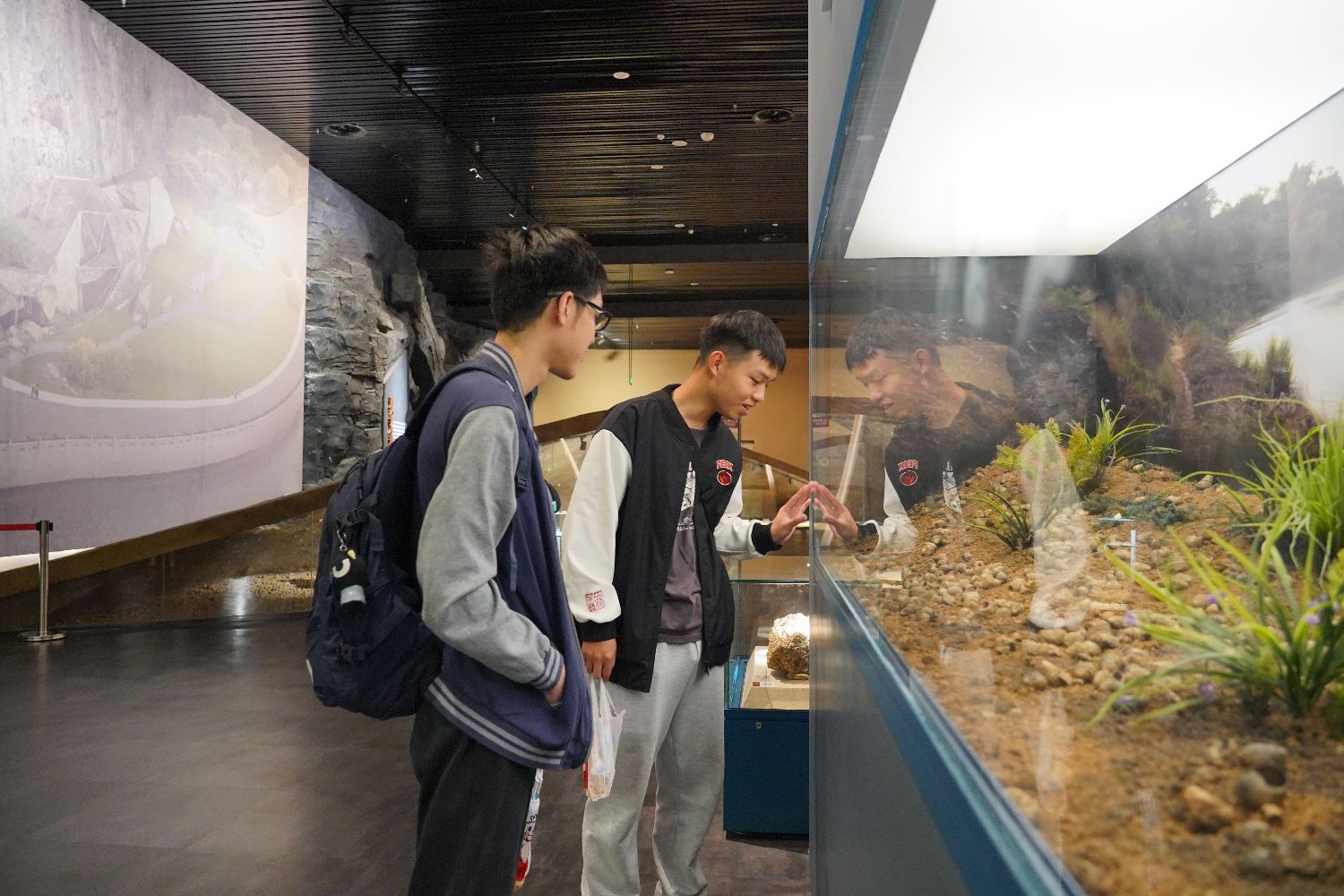 图为今年5月,游客正在观赏柳州白莲洞洞穴科学博物馆内展出的螺蛳壳化石。 韦国政 摄