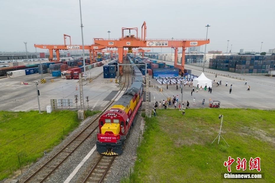 7月7日,“澜湄蓉欧快线”从成都市青白江区的成都国际铁路港首发。中新网