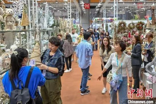 在德艺文化创意集团股份有限公司展位,一棵约2.3米高、有不同饰品组合的圣诞树吸引眼球。“市面上很多产品是圣诞树和陶瓷饰品分开摆设,而我们这款产品是把两者组合起来,摆放在树的周围,采购商会觉得更直观。”德艺文化创意集团股份有限公司副总裁欧阳军表示,得益于该公司产品研发力度加大,根据当地用户需求研发产品,而且性价比相对高,开幕数小时已经获得不俗的成绩。