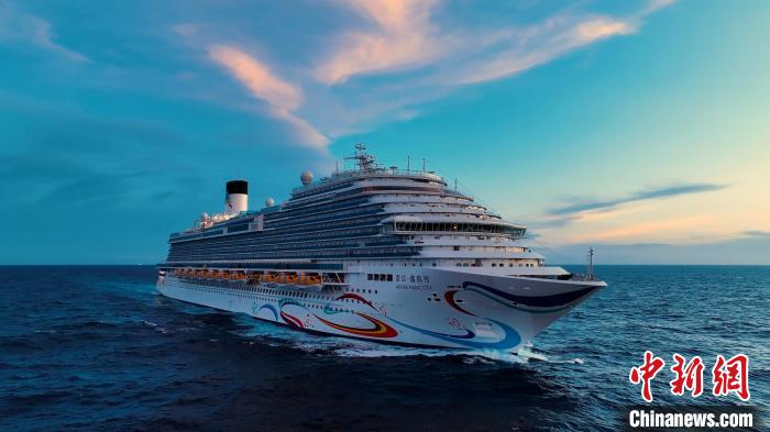航拍国产首艘大型邮轮爱达·魔都号。中新网/中船邮轮供图