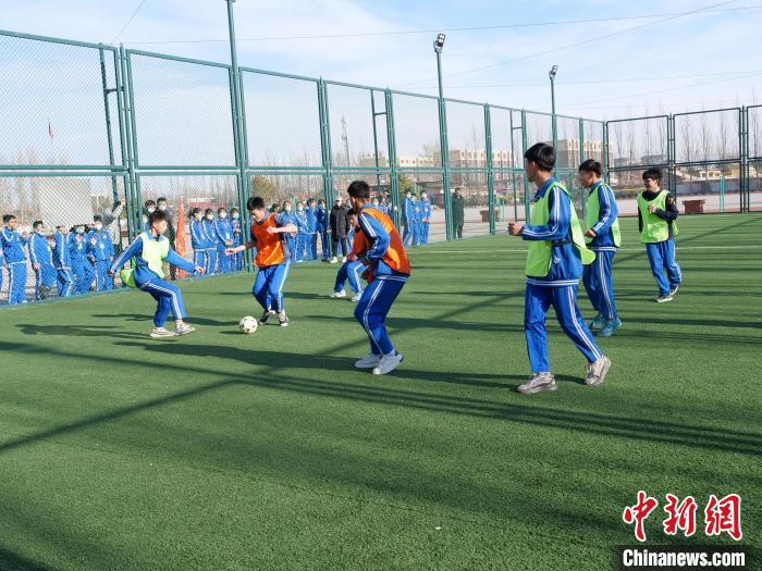 呼和浩特一所学校的学生们在课后踢足球。中新网