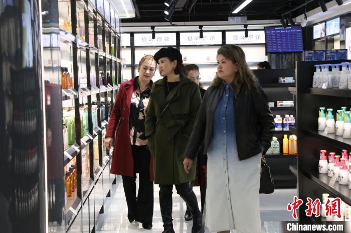 中新网报道,11月5日,乌鲁木齐市民阿依古丽·依明在家门口的一家保税商品体验中心选购了一些韩国进口的化妆品。她说:“这里有很多国外商品,在家门口逛国际商场的感觉真棒。”