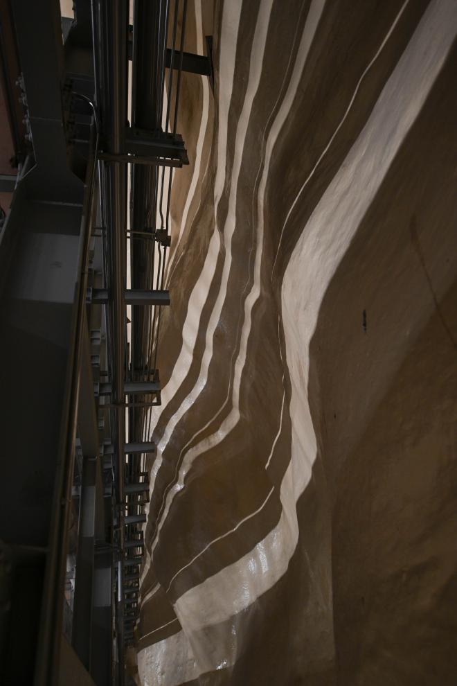 这是11月7日在锦屏大设施实验厅内拍摄的防水抑氡层。新华社