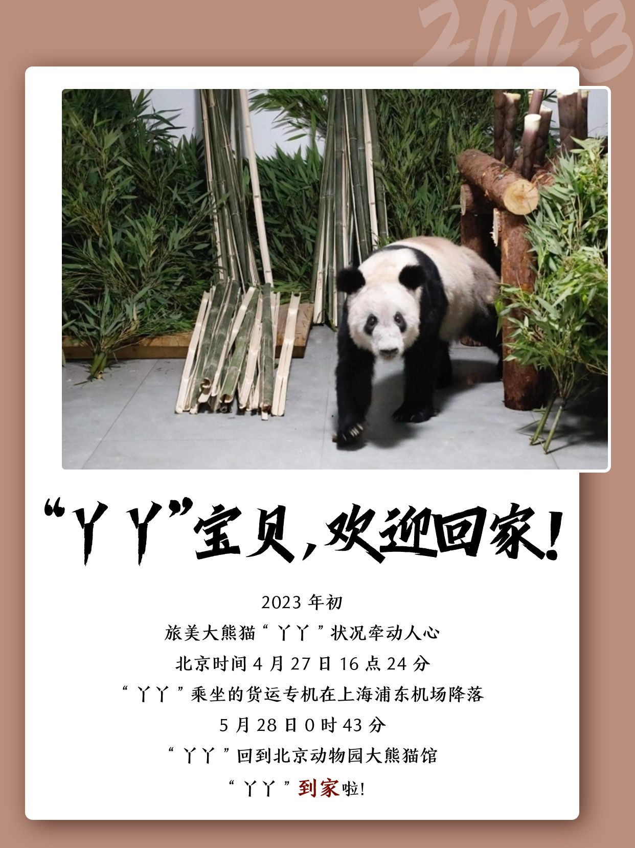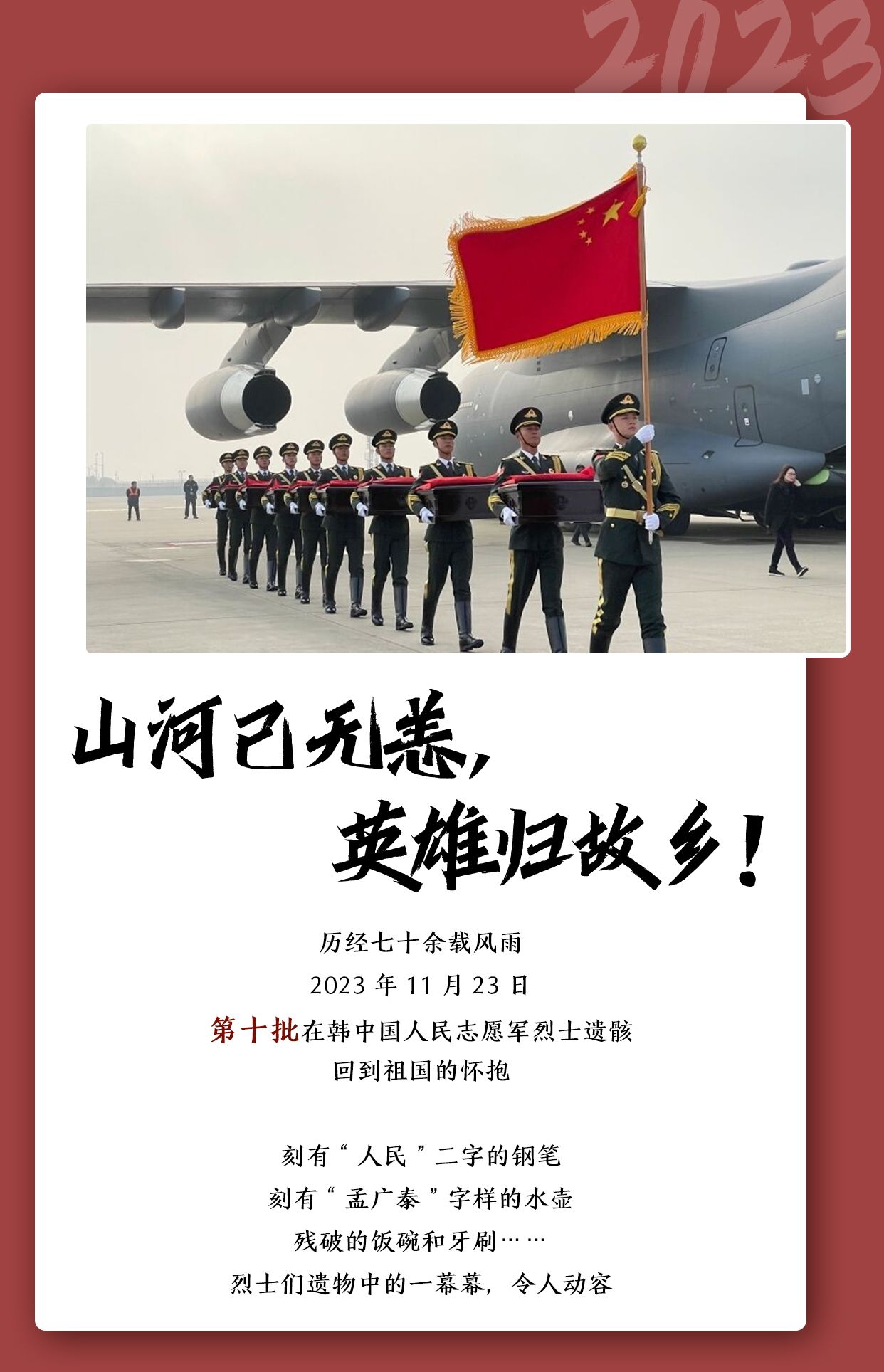 2023年,“香香”“丫丫”等“友谊使者”回家了,25位在韩中国人民志愿军烈士也回家了,中国人坐上了自己的大飞机,中国空间站又迎来了新的变化,中国电影市场复苏、旅游市场火热,粮食生产丰收、快递业务量再创新高,中国再添大国重器、超级工程……回家、突破、实现、超越、成就,走过2023年,我们见证了中国一幕幕历史性时刻!