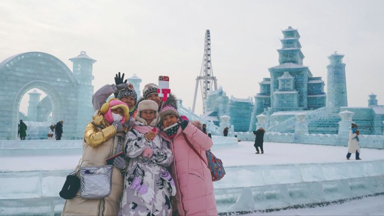 松花江上升起热气球、索菲亚教堂挂上梦幻月,大到18米高的雪人,小到餐桌上切开摆盘的冻梨,都显示着哈尔滨人热情豪迈的待客之道,让台湾朋友心动不已。