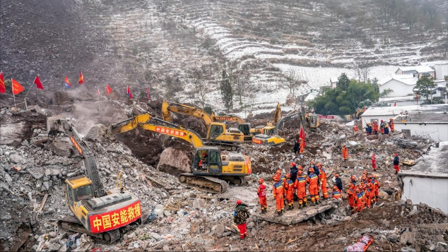 新华社报道,灾害发生后,各支救援队伍陆续赶赴现场。目前共有省、市、县救援力量1000余人,搜救犬81只,挖机、装载机、运输救援车辆150余台(辆)参与救援,现场部署6支专业搜救分队,利用雷达生命探测仪、音视频探测仪、无人机、搜救犬等技术手段,在3个区域开展搜救作业。