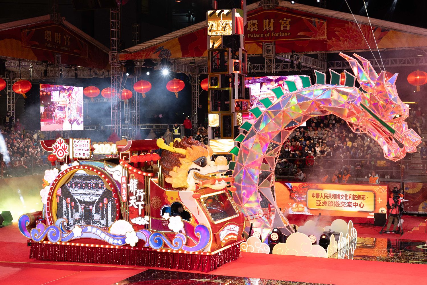 澳门12日晚举行2024年农历新年花车汇演,以及“欢乐春节─龙马精神烟花汇演”,作为今年贺岁重头活动,庆祝甲辰龙年新春和澳门特别行政区成立25周年。