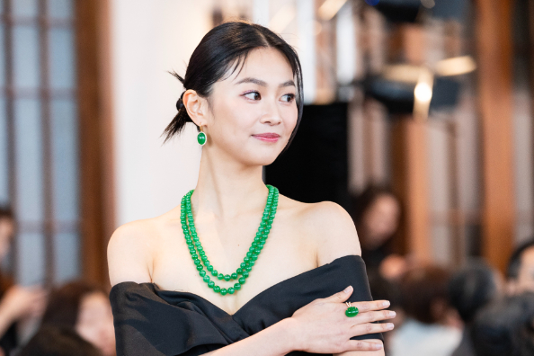 艺人郭柏妍在珠宝汇演上展示首饰。中新社