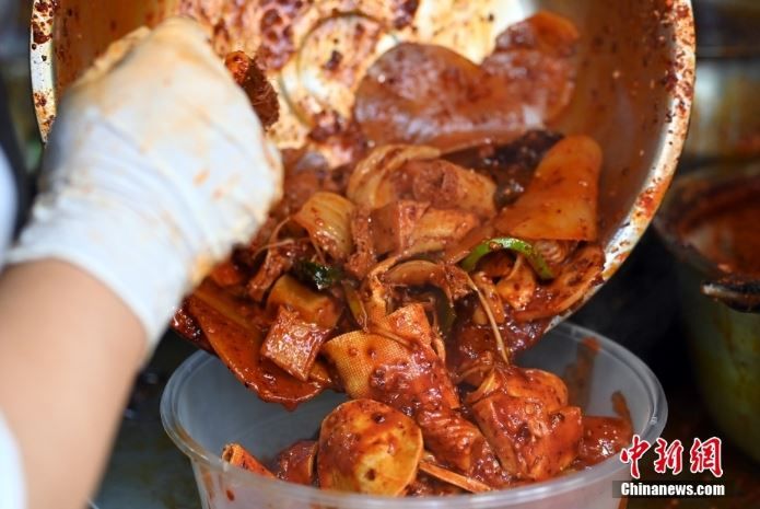 3月14日,甘肃天水,商家正在制作麻辣烫。中新网