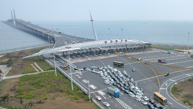 3月30日,港珠澳大桥珠海公路口岸迎来假期车流客流高峰。中新社