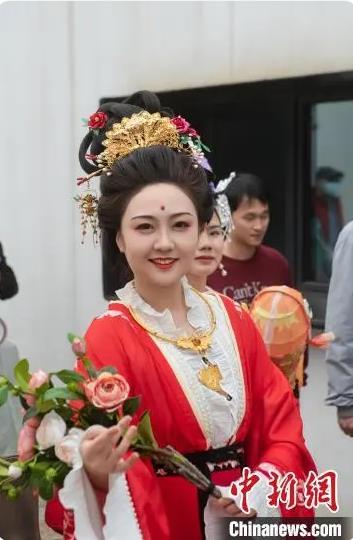 民众身着神仙图汉服,扮演“山茶花神”。中新网