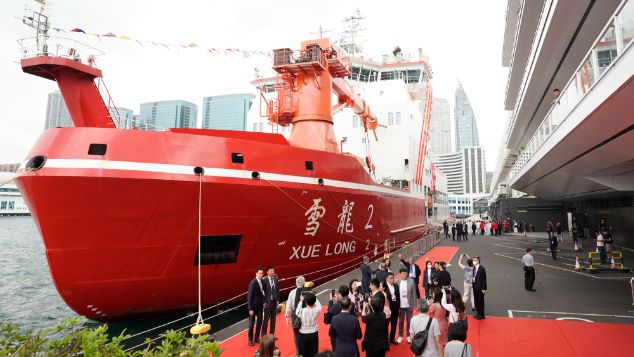 中国首艘自主建造的极地科考破冰船“雪龙2”号在结束中国第40次南极考察任务后,于8日抵达香港特区,这是“雪龙2”号首次访港。香港学生在登船参观后表示,为中国的科技成就自豪。