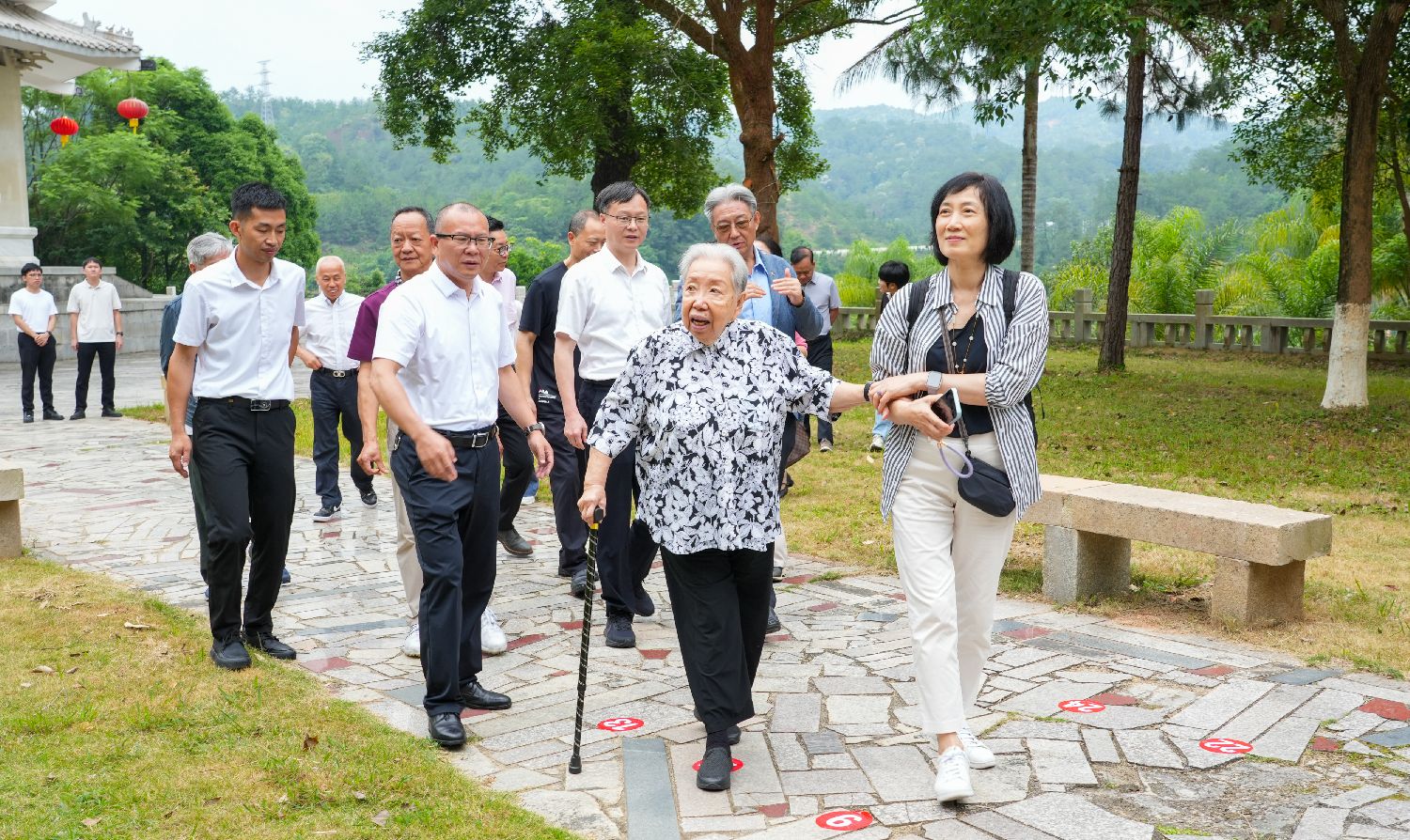 5月13日,93岁高龄的胡仙博士(中)回到阔别10年的家乡福建省龙岩市永定区探亲谒祖。(永定区融媒体中心供图)