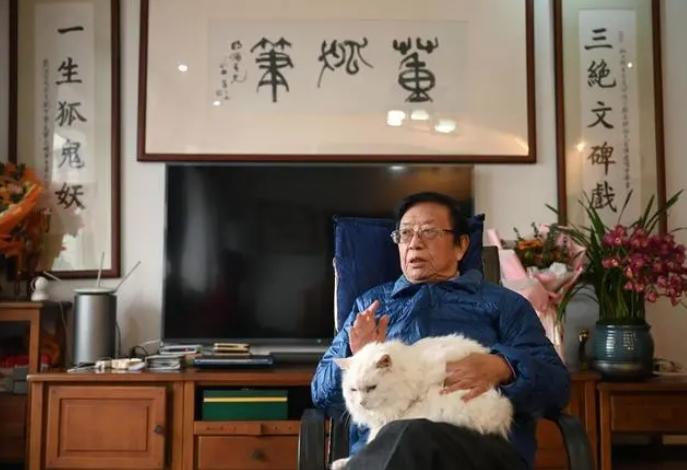 他从自贡调往成都,搬家时,很多东西要扔掉,但猫,他一定要带走。后来这只猫他养到了19岁去世,魏明伦把和爱猫的合影挂在客厅里,又养了一只鼻头有红点的同款白猫,名字和之前的咪咪一样,他说这是纪念曾经逝去的“家庭成员”。