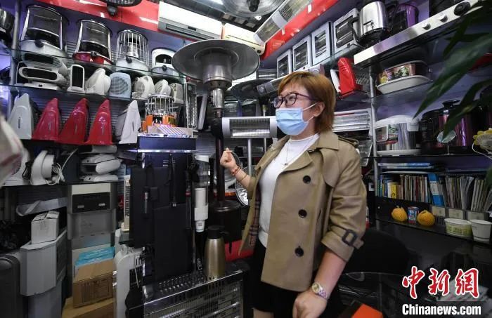 义乌国际商贸城店主余欢丹介绍自家档口的取暖设备。中新社