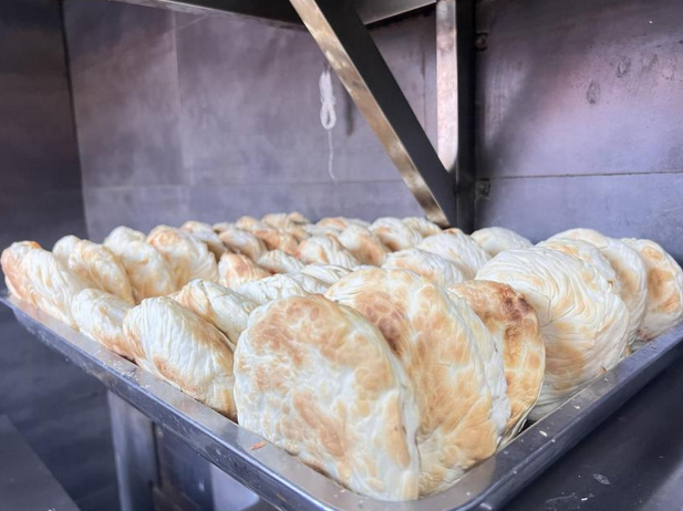 2023年3月,潼关肉夹馍的千层饼刚刚出炉。中新社