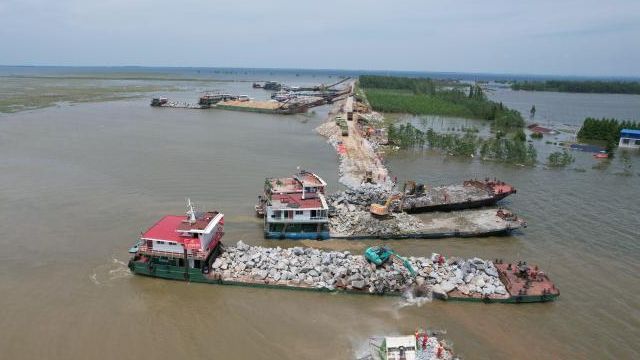 大陆央视报道,当地时间5日下午,湖南省岳阳市华容县团洲垸洞庭湖一线堤防发生决口险情。