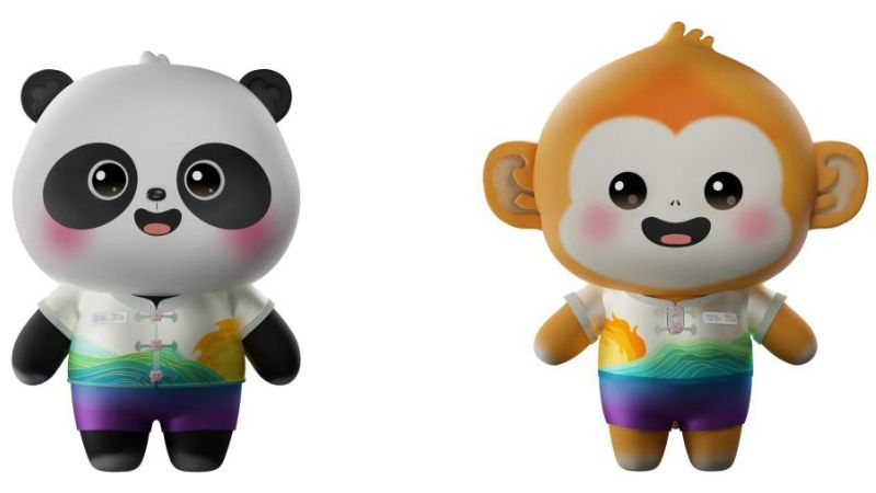 吉祥物“蜀宝”和“锦仔”首次公开亮相,以“双宝”大熊猫和川金丝猴为原型。设计团队希望以“双宝”为文化载体,在展现成都生态宜居、热情友好城市形象的同时,呼吁大家关爱珍稀动物、关注生物多样性保护,与世运会注重环保与可持续理念相契合。