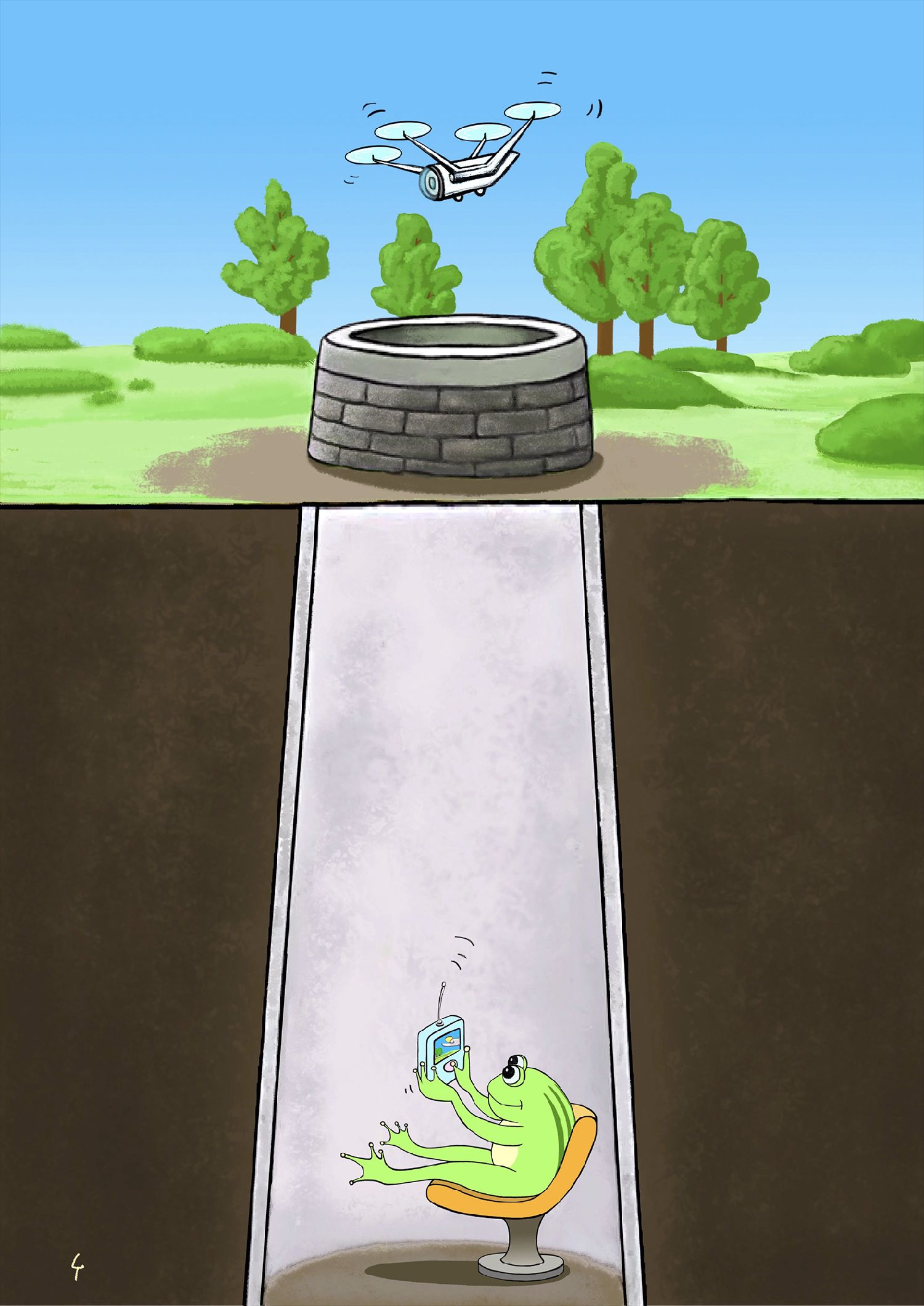 由中新社与北京漫画学会近日合作推出的“中新漫画塾”《漫画成语》专栏,第一期以“种瓜得瓜、种豆得豆”“不由自主”“坐井观天”为征稿主题,经过北京漫画学会组织多位知名漫画家、学者、教育专家等对投稿作品进行点评及推荐,共遴选出14幅作品予以发表。本篇刊发以“坐井观天”为主题创作的4幅作品。