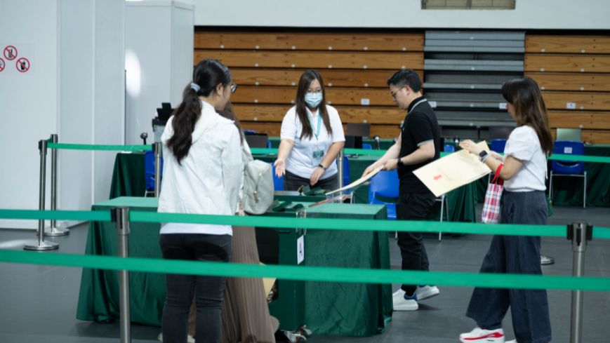 8月11日,投票人在澳门理工大学体育馆投票地点。香港中通社