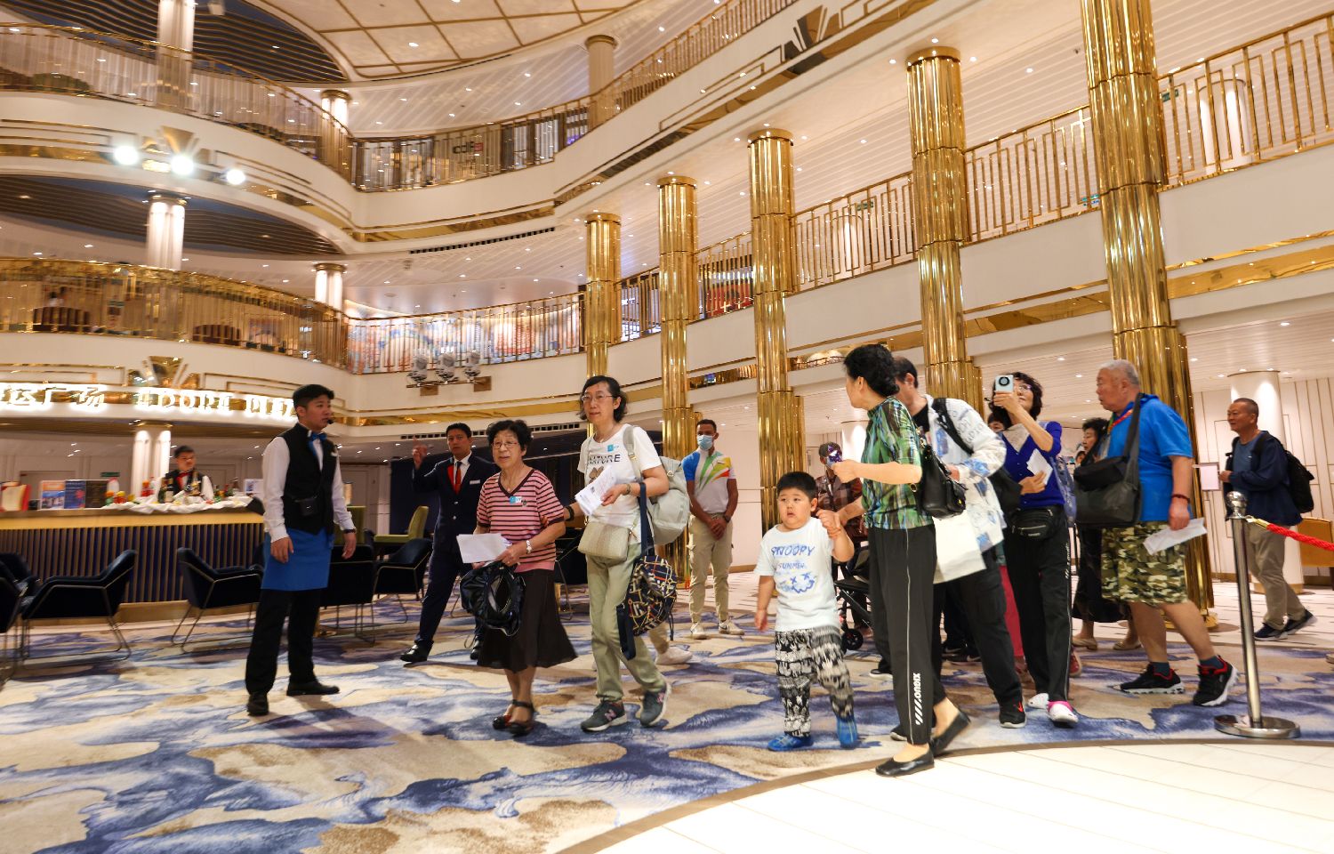 5月26日,旅客登船后走入“爱达·魔都号”大厅。中新社