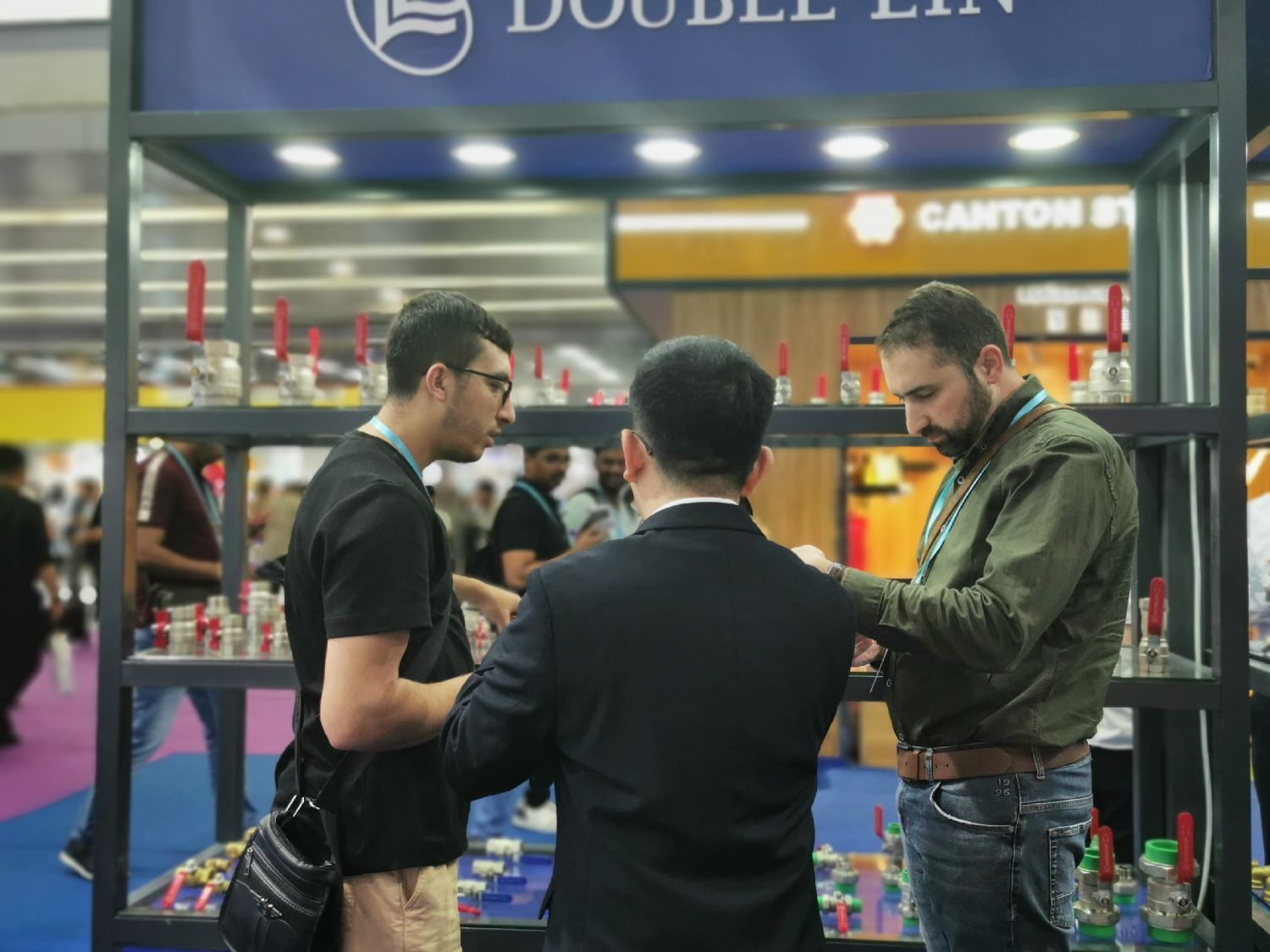在肇庆高新区格兰新材料科技有限公司的展位上,一个设计精巧的淋浴间同样吸引了境外采购商的关注。据展位负责人透露,这个淋浴间采用聚合石英板装配而成,板材均由数控技术加工而成,具备防水、隔热、隔音功能,易于安装,适用于装配式建筑领域。